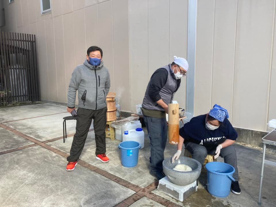 地元の奥村市議にもついてもらったお餅を来客していただいた皆様に振る舞いました。