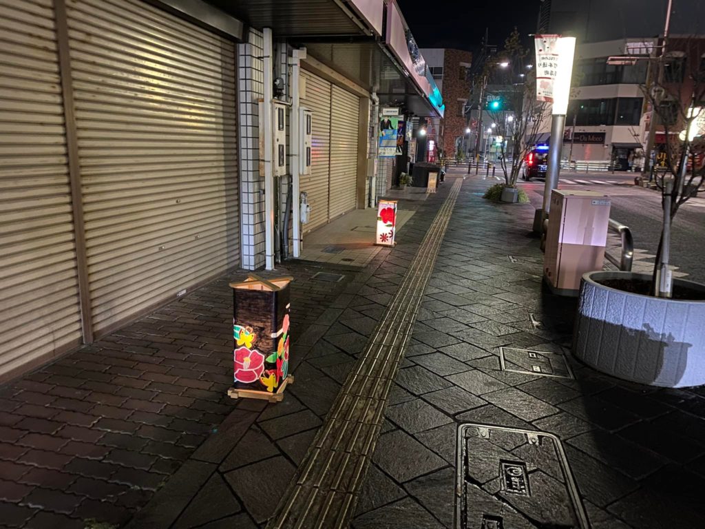 桜町商店街も大晦日の夜、毎年豊田東高校の学生さんたちに製作していただきました行燈じゃんに灯が灯りました。