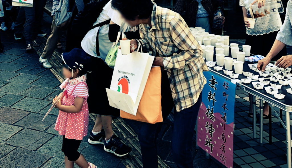 桜町本通り商店街では、「青空イベント」や「おもてなし」、各個店のセールなどで盛り上げています。
